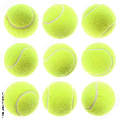 Bright tennis ball isolated on white, collage