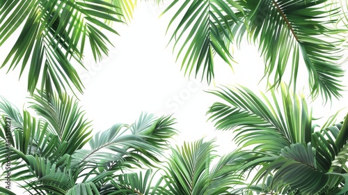Bright tropical palm leaves frame - A vibrant frame of palm leaves with a white central space, perfect for compositions or as a backdrop