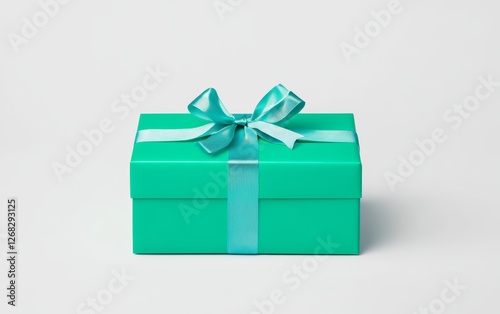 Bright Turquoise Gift Box with Ribbon on White Background