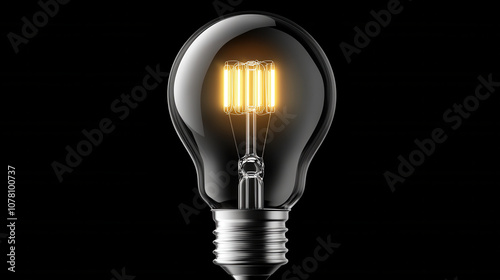 Bright upright lightbulb glowing against solid black background, showcasing its elegant design and warm illumination. Perfect for modern decor and lighting solutions