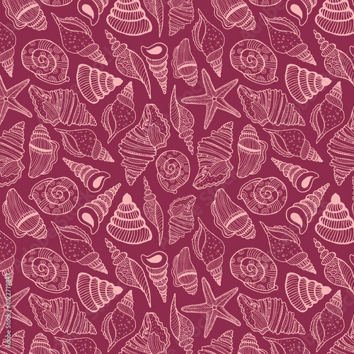 Bright vector background pattern with underwater marine life. Includes coral, seashells, and aquatic creatures. Perfect for kids designs, summer themes, and marine graphics.