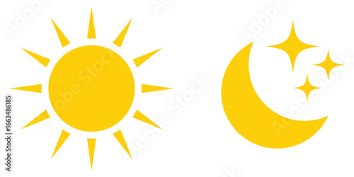 Bright vector drawing on white background. Sun, moon and star icon on white background. Modern isolated vector icon set. Vector icon set on white background. isolated art work. EPS 10.