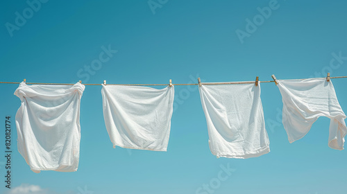 Bright White Clothes Drying on a Line Against Blue Sky