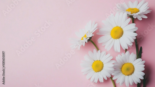 Bright white daisies arranged elegantly on a soft pink background showcasing nature's beauty