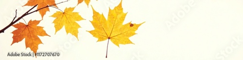 Bright yellow autumn leaf isolated on white background, foliage, nature