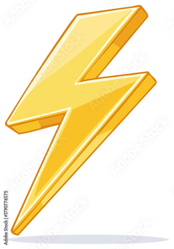 Bright Yellow Cartoon Lightning Bolt Illustration, Energetic Icon of Electricity and Power