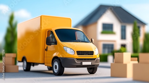 Bright Yellow Delivery Truck Arriving at Suburban Home AI Generated