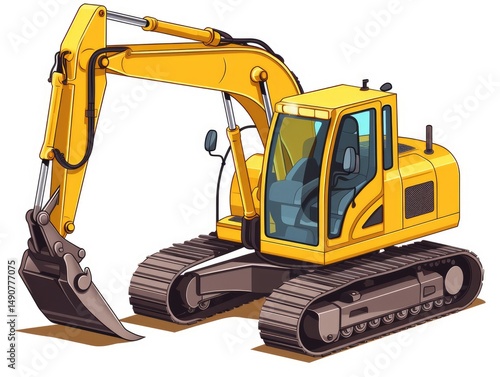 Bright Yellow Excavator Machine with Large Bucket and Tracks