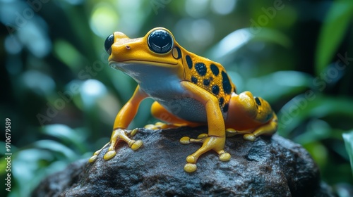 Bright yellow frog with black spots on