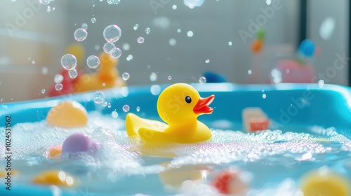 Bright Yellow Rubber Duck Floating Joyfully in Water