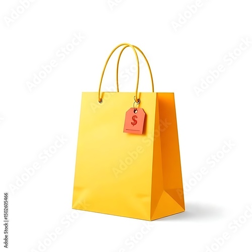 Bright Yellow Shopping Bag with Price Tag Perfect for Sales, Discounts, and Retail Branding