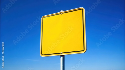 Bright yellow sign against a clear blue sky , easy, simple, clear, sunny, signage, outdoors, bright, colorful