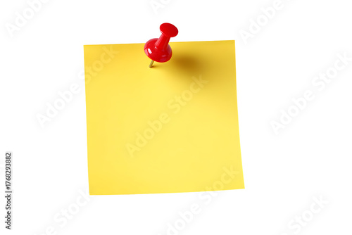 Bright yellow sticky note with red pushpin for office or classroom use