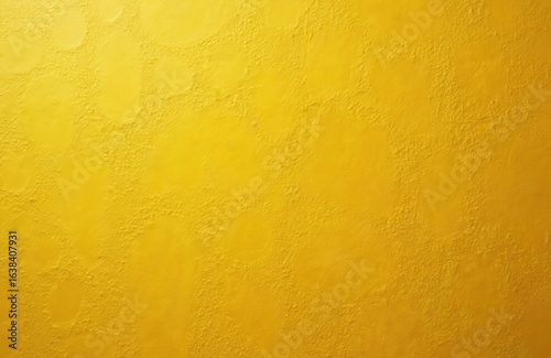 Bright yellow stucco wall texture, weathered and aged with rough, bumpy surface. Painted cement background shows subtle circular patterns and gritty, detailed finish, offering vintage urban feel.