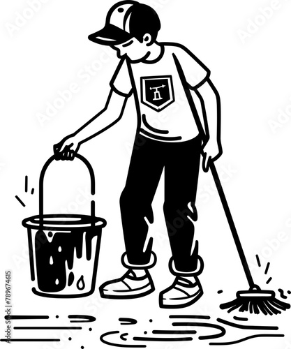 Brighter Tomorrow Cleaning Floor Icon Polished Professionals Man with Mop Emblem Design