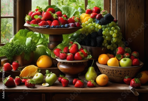 brightly colored fruits vibrant vegetables artfully arranged scale creating joyful visual display fresh produce, apple, avocado, background, basket, berry