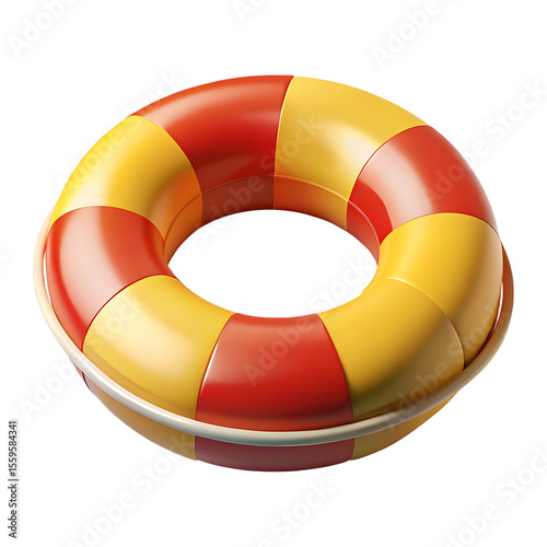 Brightly colored red and yellow life ring isolated on transparent background