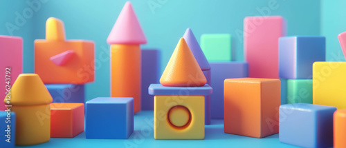 Brightly colored toy blocks arranged in playful stacking formations in a casual game setting
