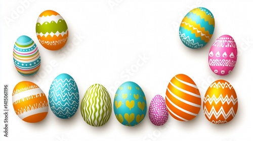 Brightly lit clean white background with colorful Easter eggs positioned on each side made with Generative AI technology