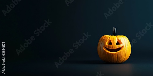 Brightly lit Halloween pumpkin resting on dark surface at night