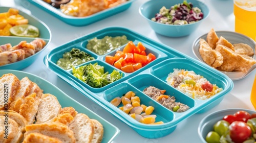 Brightly Lit International Lunch Dishes in Cafeteria Setting
