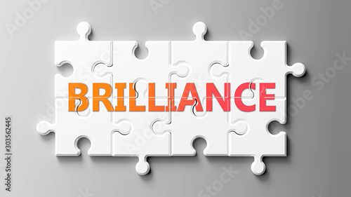 Brilliance complex like a puzzle - pictured as word Brilliance on a puzzle pieces to show that Brilliance can be difficult and needs cooperating pieces that fit together, 3d illustration