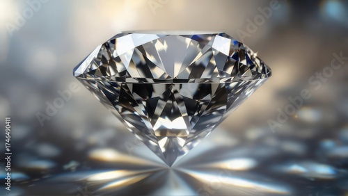 Brilliant Cut Diamond Gemstone Sparkles with Light Reflections.