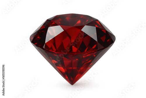 Brilliantly cut red gemstone with intricate facets, displayed on a transparent background, showcasing its vibrant color and clarity