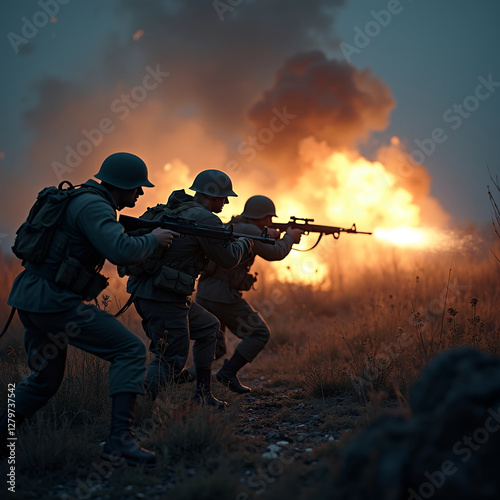 Britische Infanteristen im Kampf bei Nacht Word War II