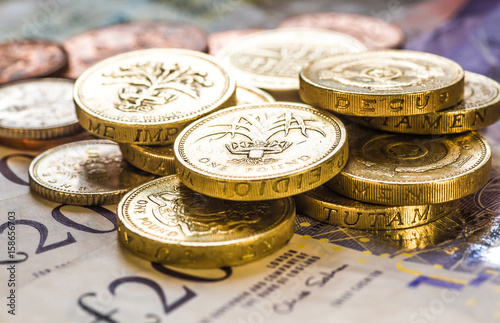 British coins stack on black, pound sterling