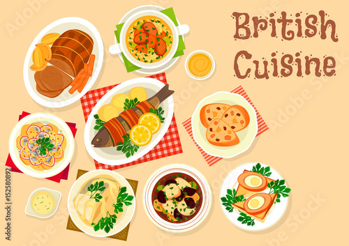 British cuisine tasty dishes icon for menu design