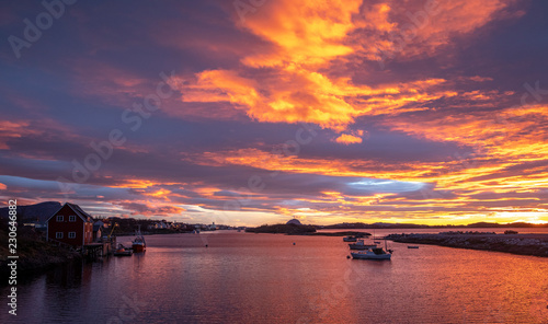 Brønnøysund with colorful clouds, Nordland county