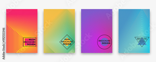 Brochure design with halftone lines and neon gradients. Vector illustration.