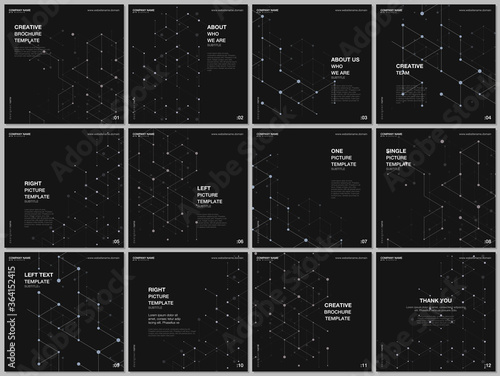 Brochure layout of square format covers design templates for square flyer leaflet, brochure design, report, presentation, magazine cover. Scientific medical research. Molecular connection structure.