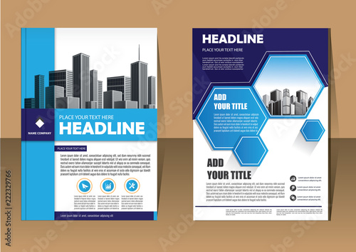 Brochure template layout, cover design annual report, magazine, flyer or booklet in A4 with blue geometric shapes on polygonal background