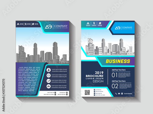 Brochure template layout, cover design annual report, magazine, flyer or booklet in A4 with blue geometric shapes on polygonal background