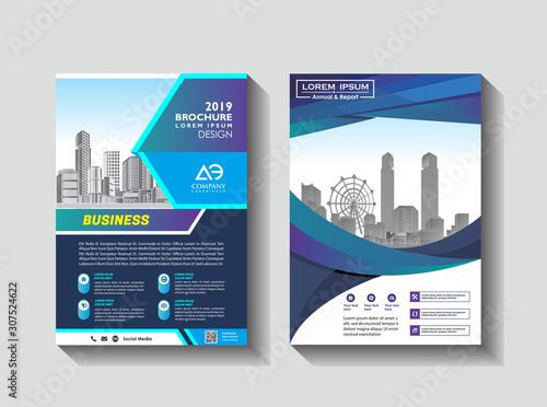 Brochure template layout, cover design annual report, magazine, flyer or booklet in A4 with blue geometric shapes on polygonal background