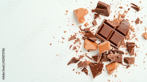 Broken chocolate pieces on white background a delicious treat with milk and dark chocolate