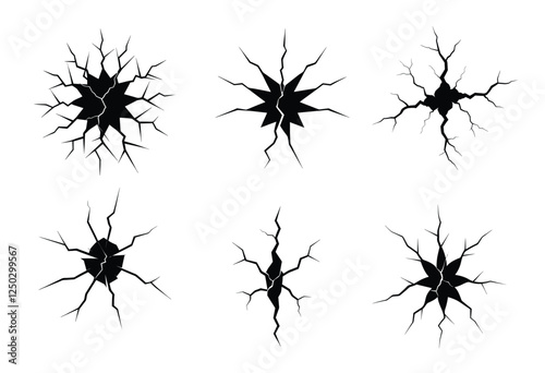 broken glass spider, cracked silhouette, cracked line, ground cracked set vector silhouette