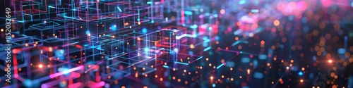 Broken grid connections on a dark, abstract background, with neon highlights adding a futuristic and chaotic visual element
