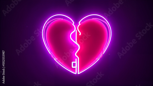 Broken Heart: A stunning digital illustration of a large heart illuminated by twinkling pink and purple lights, filled with the magic of stars and sparkles, perfect for Valentine's Day celebrations