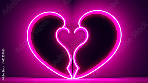 Broken Heart: A stunning digital illustration of a large heart illuminated by twinkling pink and purple lights, filled with the magic of stars and sparkles, perfect for Valentine's Day celebrations