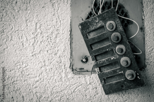 broken old door bells in selective focus