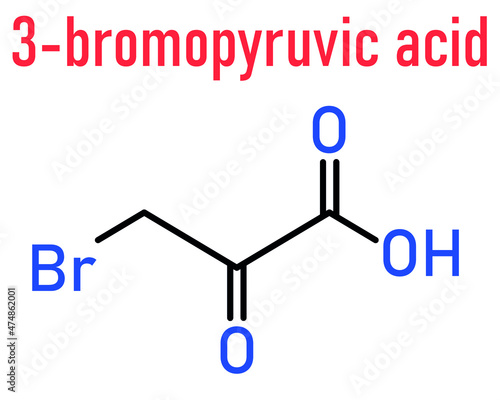 Bromopyruvic acid or 3-bromopyruvic acid, 3-bromopyruvate, controversial cancer drug molecule. Investigational oncology drug, currently used without supporting clinical trial data. Skeletal formula.