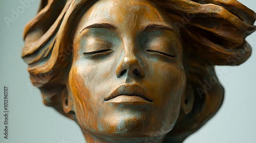 Bronze Sculpture of Tranquil Female Face with Flowing Hair