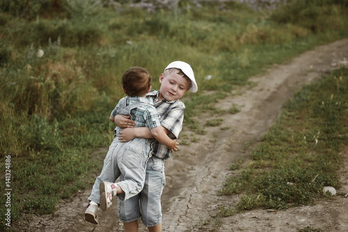Brother and sister on a walk in the fresh air.