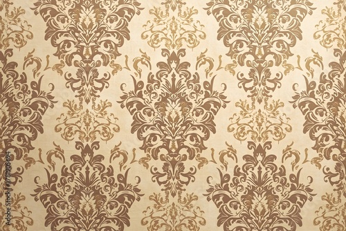 Brown and Cream Antique Vintage Damask Style Pattern Christmas Wallpaper Background