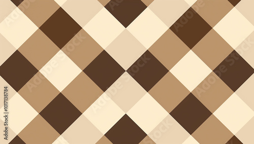 Brown and Cream Checkered Pattern Simple Flat Illustration