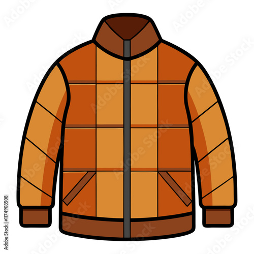 Brown and Orange Puffer Jacket Illustration, Stylized puffer jacket in shades of brown and orange with a quilted design, perfect for winter fashion or outdoor themes.