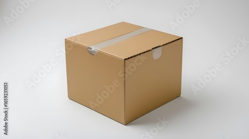 Brown cardboard box sealed with tape ready for shipping or product packaging on white backdrop